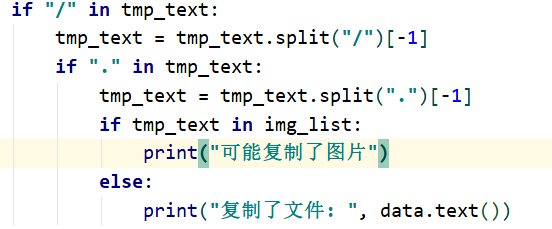 从第二个输出结果可以看到,在复制了非图片文件后也可以根据文件名来判断是否是图片,这样就有更多可玩性。如下所示,根据后缀名判断是否是图片。