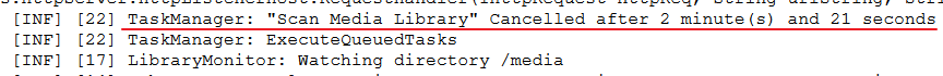 1 | TaskManager: "Scan Media Library" Cancelled after 2 minute(s) and 21 seconds |