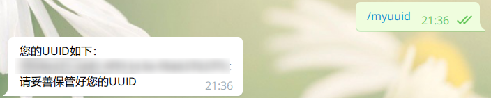 在telegram机器人聊天界面输入/myuuid,查看是否回复